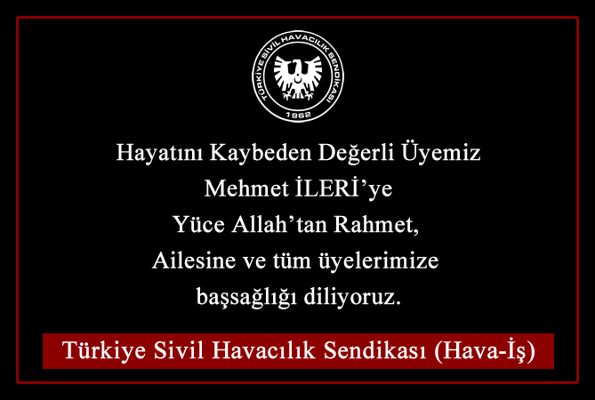 Hayatını kaybeden değerli üyemiz Mehmet İLERİ'ye yüce Allah’tan rahmet, ailesine ve tüm üyelerimize başsağlığı diliyoruz.